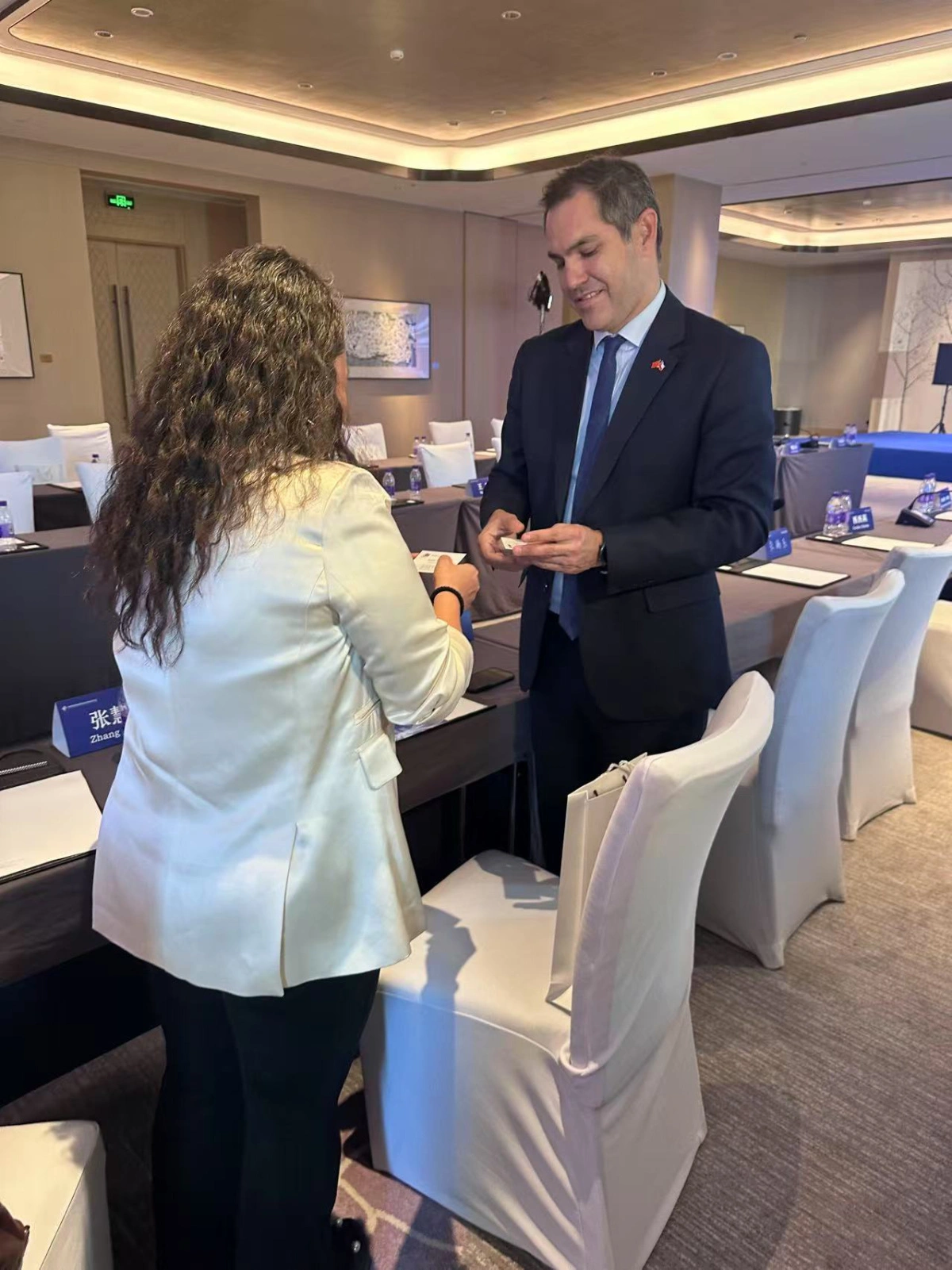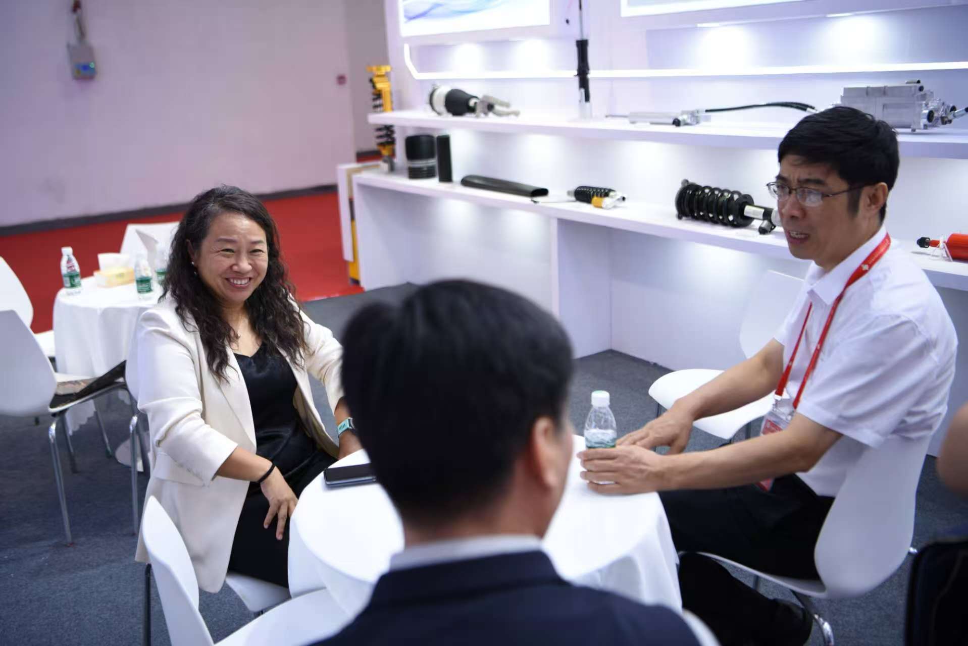 Roundtable Meeting: At the "Henan-Foreign Business Institutions Exchange Meeting," Yang Weixia, Vice President of CIJAN, outlined the company’s internationalization roadmap to foreign business representatives. responded directly to their needs, and had a productive discussion with Unai Irigoyen, Technical Director of Spain’s Navarra Investment Promotion Agency, exploring cooperation in shock absorber supply for rail transit and mid-to-high-end passenger vehicles.